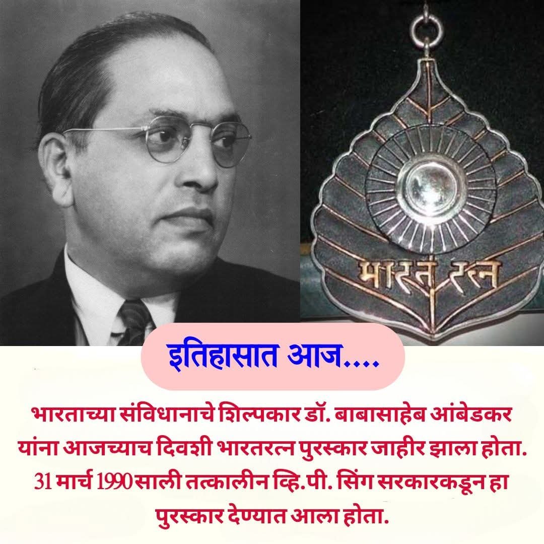 🔹 १९९० : भारतीय राज्यघटनेचे शिल्पकार डॉ. बाबासाहेब आंबेडकर यांना मरणोत्तर ‘भारतरत्न’ हा सर्वोच्च नागरी सन्मान प्रदान करण्यात आला.