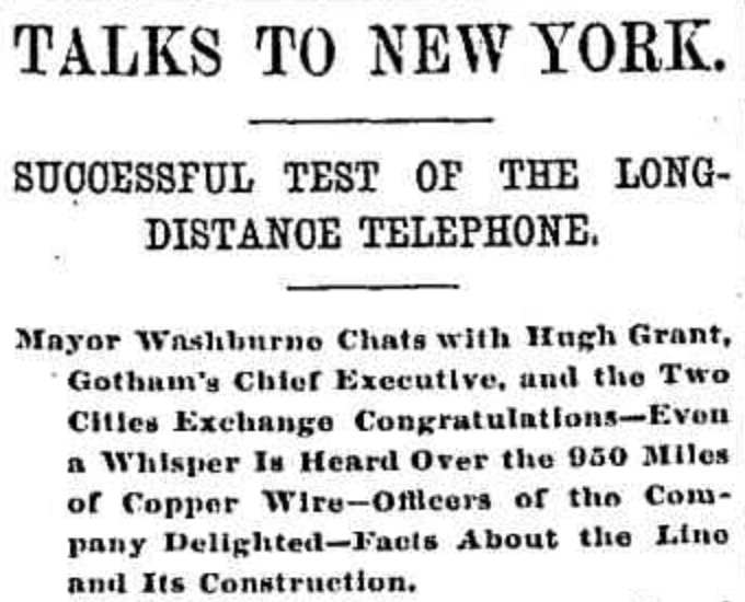 १८८३ : शिकागो आणि न्यूयॉर्क यांच्यात पहिले दूरध्वनी संभाषण झाले.