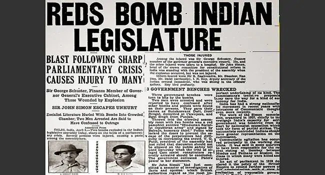 १९२९: भगतसिंग आणि बटुकेश्वर दत्त यांनी दिल्लीतील सेंट्रल असेंब्लीमध्ये बॉम्बस्फोट केला.